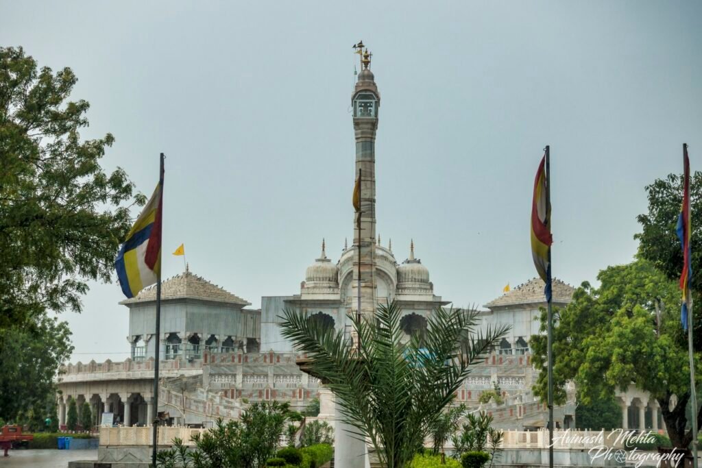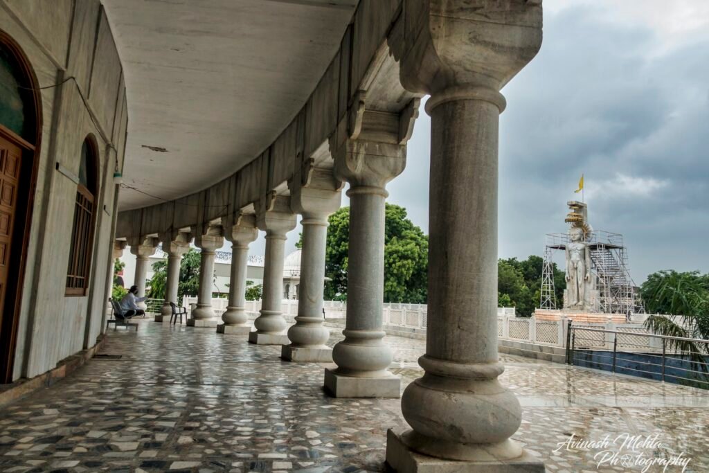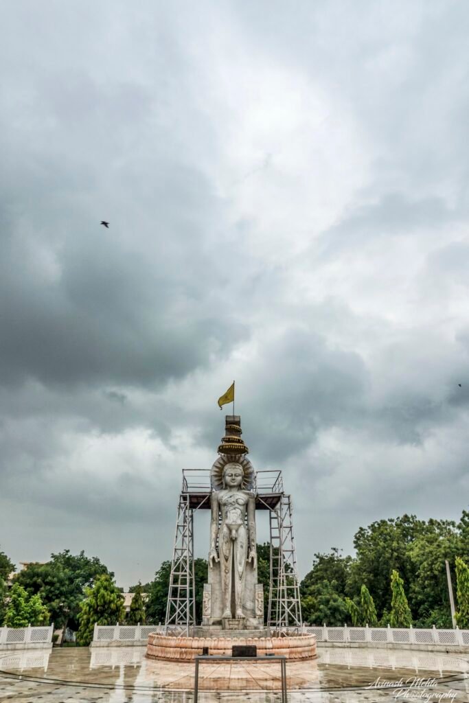 In the year 1945, an idol of Bhagwaan Padamprabhu was found while digging in a house of Moola Jaat. Miracles: Before appearing of this idol the entire village was suffering from the problems water & diseases. After the appearance of this idol, full of miracles, the problem of water vanished, death of animals, due to various diseases was stopped and after many years, villagers got a rich crop. Shri Mahorilalji Godha donated the land to construct a unique circular temple made of marble, whose beautiful spine is 85 feet high. Foundation Stone of this temple was laid by Sir Seth Shri Bhagchandji Soni of Ajmer. This beautiful idol of Bhagwan Padamprabhu is installed on a high shrine in the middle of this circular temple and there are 10 more shrines in which idol of Lord Bahubali, Lord Mahaveer, Lord Padamprabhu, Lord Rishabhadeo and Lord Naminath etc. are installed. In the open field in front of the main temple, a 27 feet high colossus of Bhagwan Padamprabhu is standing, it is very attractive. Google Map shows the exact location of the Temple.