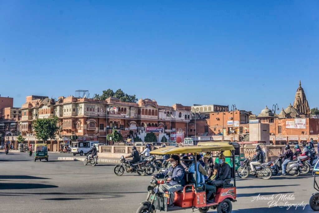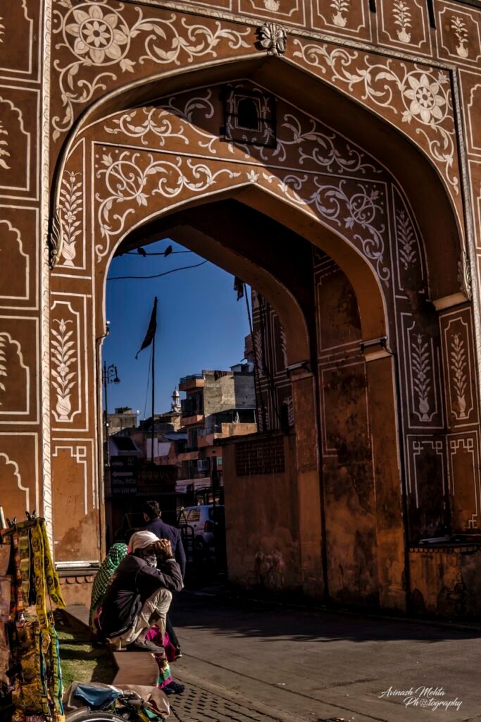 In today’s Photowalk, I travelled from Kishan Pol to Choti Chaupad. this part of the old city is the best place to enjoy the iconic pink sandstone architecture and the syncretic nature of Jaipur. For, the Temple, the Mosque, and the Gurudwara together welcome the devout here. The whole area is full of life. Colourful and fragrant flower shops vie for attention with the sweet shops and tea stalls doing brisk business. Rickshaw pullers trundle along carrying their passengers from one place to another; A thriving busy city on the move where the old and the new are in step with each other.