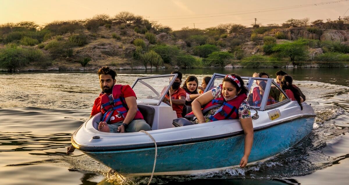 अरावली पर्वतों की गोद में ये झील पानी और उपर नीला आकाश से नयनाभिराम दृश्य दर्शा रही थी।