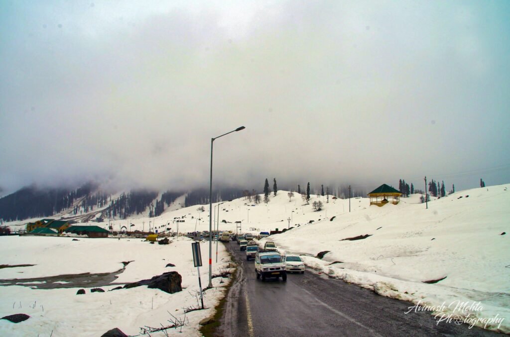 Gulmarg Come in winter, the entire place gets buried deep under snow ; making it a feast for the eyes. It is a great place for people chasing snow and wanting to experience a live snowfall for the first time. It is also one of the most famous ski resort of India. Road connectivity to Gulmarg is great and from Srinagar, you can get here in a matter of 2 to 3 hours at most. There are no long hours of driving involved.