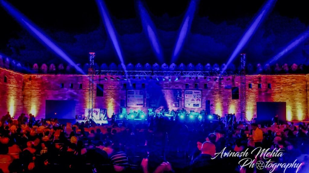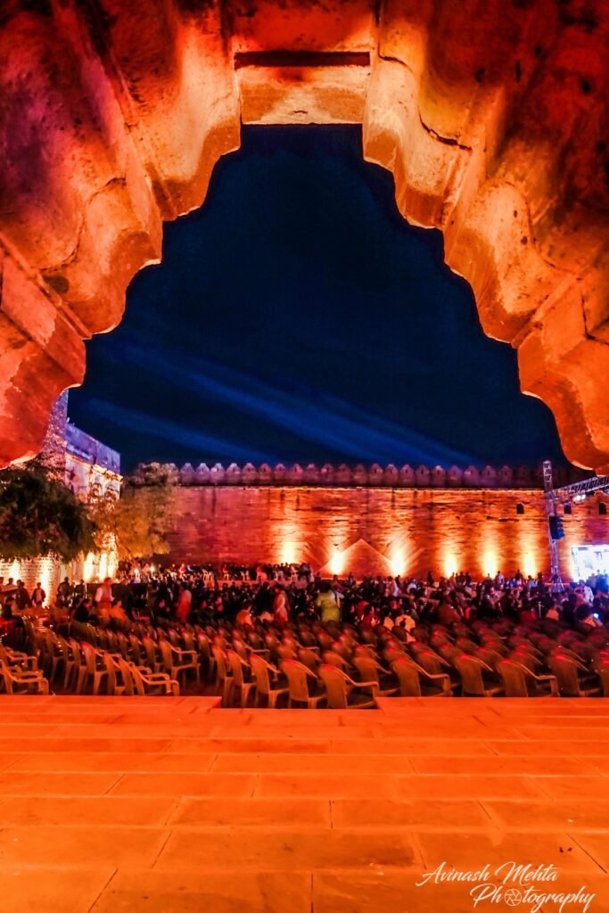 A musical evening at Mehrangarh. My Photowalk on this memorable occasion. Asha Bhonsale, the legendary singer, was the star of the show. When I reached up at the fort, dusk had fallen over the city. Beneath a darkening sky, city lights twinkled creating a fairyland as far as the eye could see. Here are a few photos of that magical musical evening.