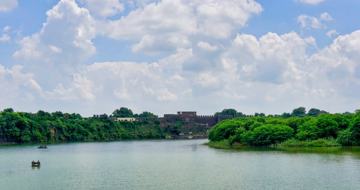 अंदर क़रीब 2.5 किलोमीटर में फैला इस दुर्ग को देखने के लिए गोल्फ कार की भी व्यवस्था थी व झील में सुरक्षा जैकेट के साथ बोटिंग की व्यवस्था थी।बारिश का सुहाना मौसम था ठंडी ठंडी हवा व पानी की फुहार मन मोह रही थी।