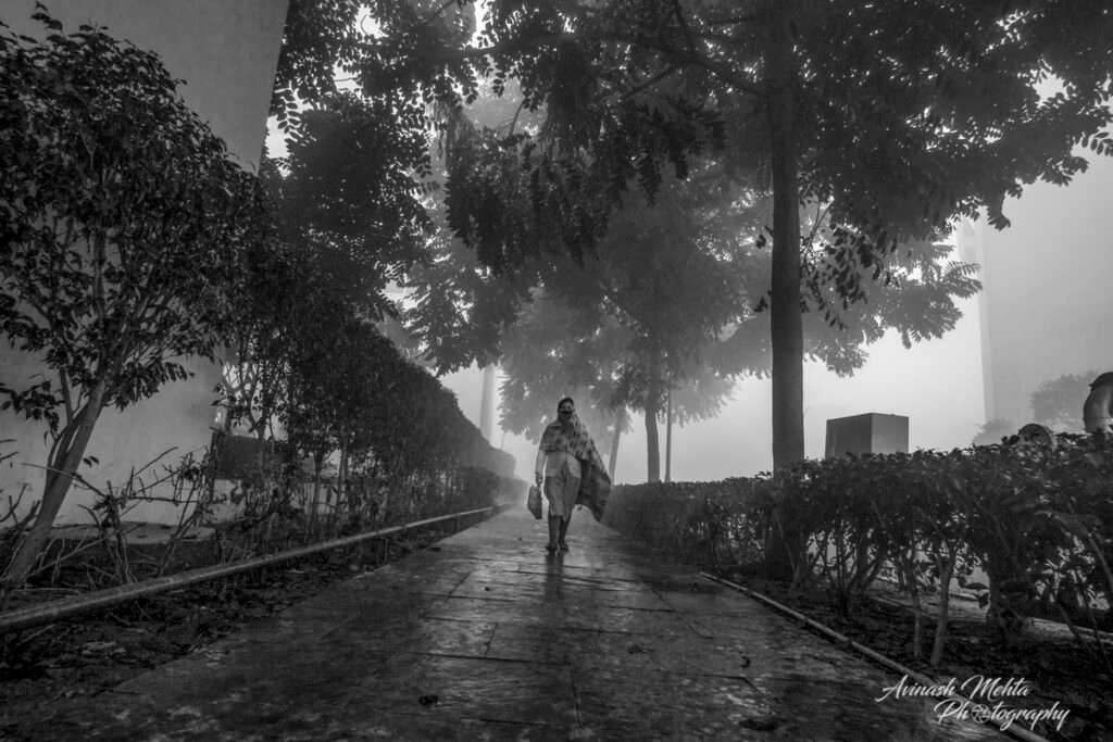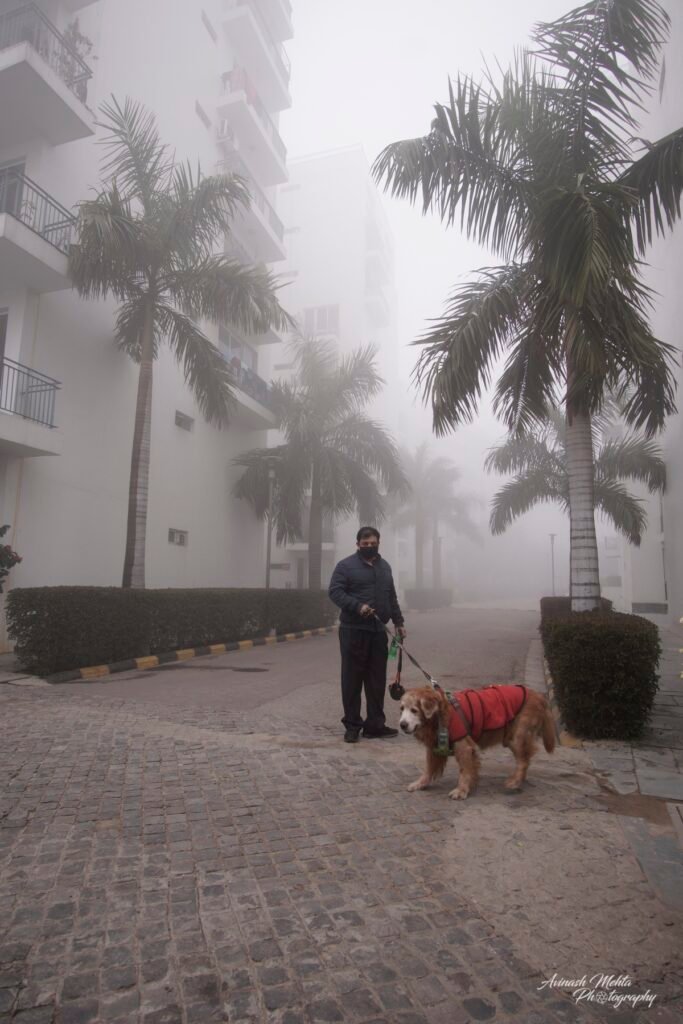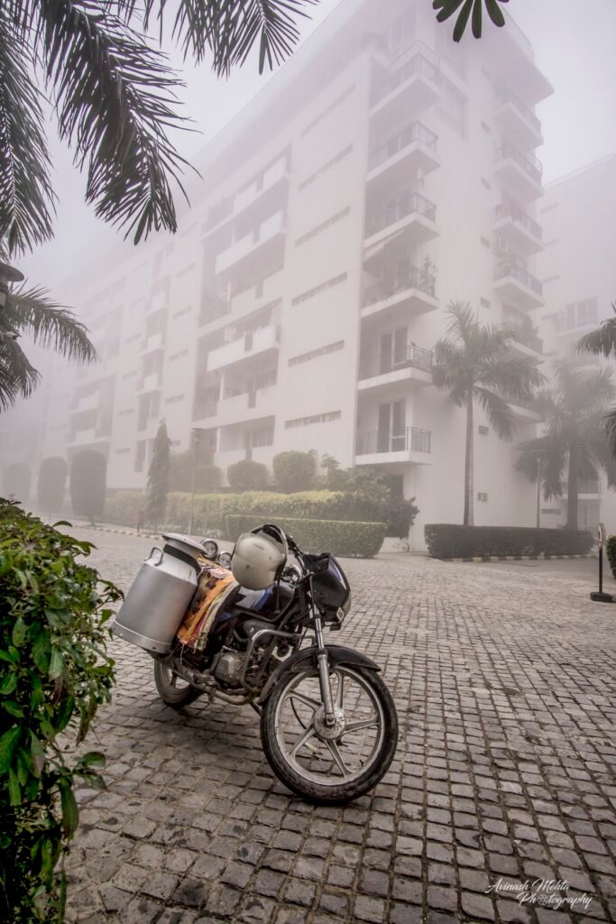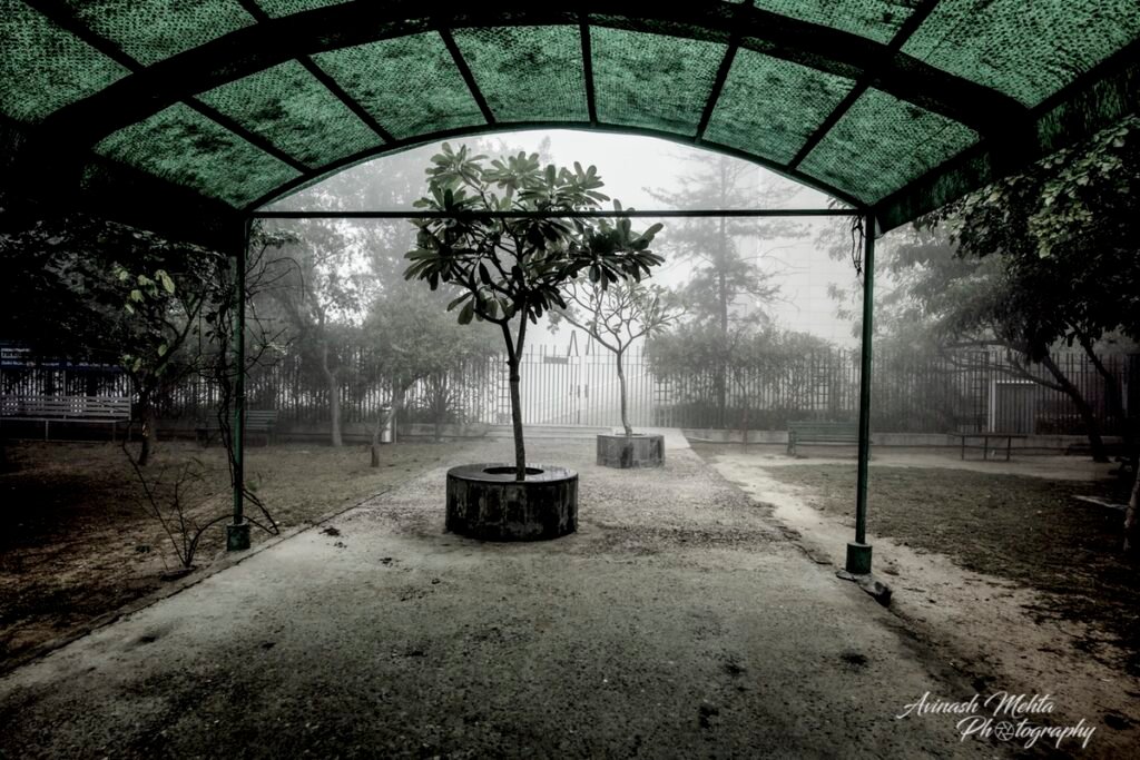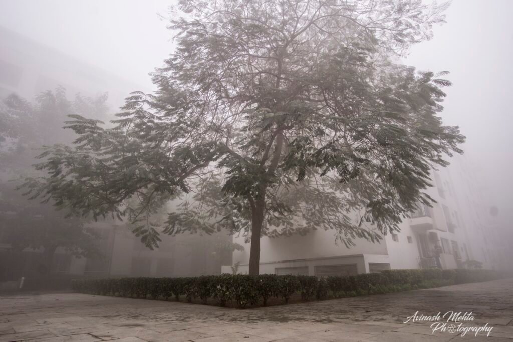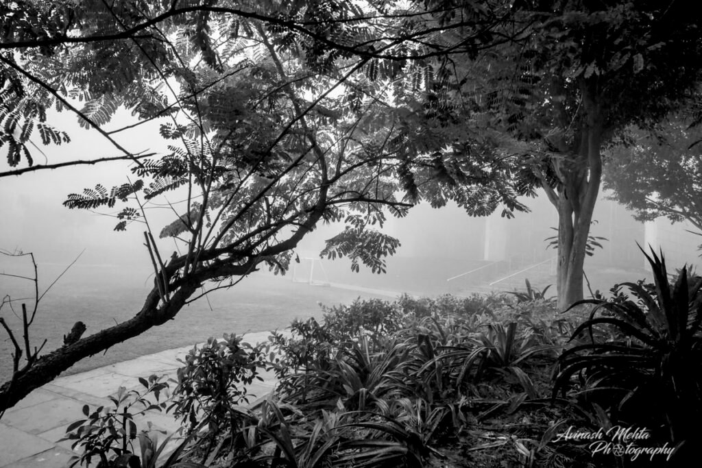 Freezing at 2 degrees Celsius, Delhi was cloaked in its trademark smog. And although the cold and low visibility has slowed down the brisk pace of the city, the business of living goes on. The daily staples, milkmen, newspaper boys, the domestic help do their rounds with the same commitment to work as before. Young and old, fond of the outdoors, go for their walks, play football, or take their pets for a stroll. Even Nature looks mesmerizing on a foggy day. My Photowalk today is of an immaculately maintained housing complex in Gurugram where I go cycling with my camera every morning.
